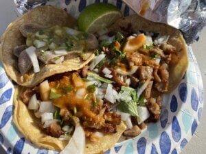 Leo’s Taco Truck (San Francisco): A famous LA taco truck known for its al pastor and piña tacos arrived to SF’s Great Highway in April. Sample their meat in a torta, huarache, burrito, quesadilla, or loaded nachos. They also offer tripa, lengua, carnitas, cabeza, chorizo, buche (stomach), and suadero. The truck posts up a short walk from the beach making it the most scenic taco joint on this list.